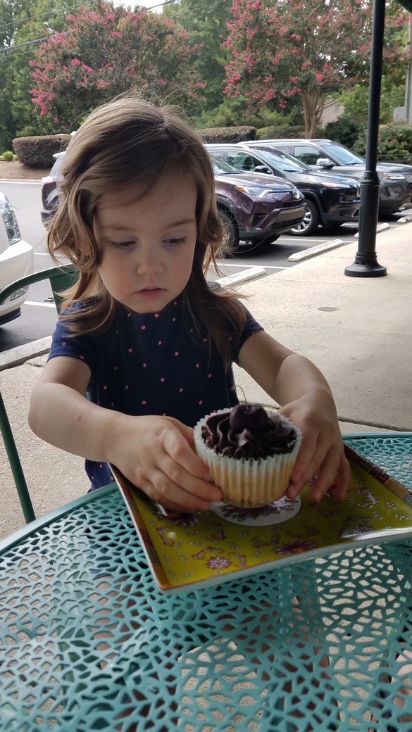 Note Fern’s up-on-her-tippy-toes excitement as she examines her choices. The cupcake display overloaded her senses with possibility as she moved to and fro among the bounty. Which flavor to choose?